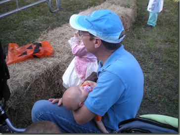 My parents helped us out with the kids, which was WONDERFULLY helpful since they all wanted to get down and play the games and have fun! My dad held on to Lynae for a rare granddaddy/grandbaby time :) Here they are watching the horseback rides.
